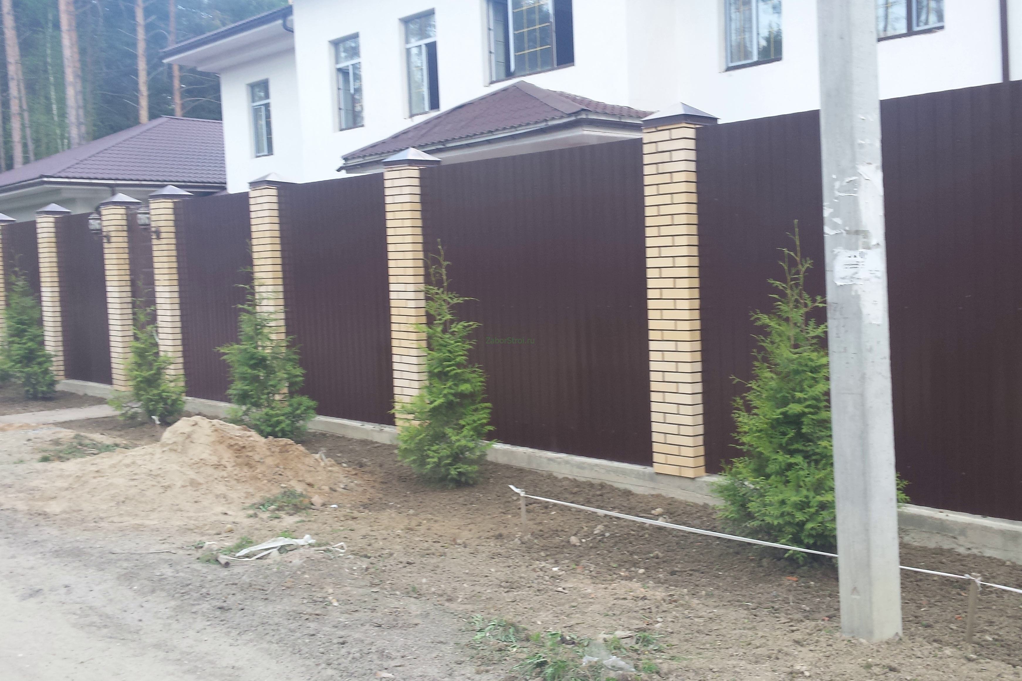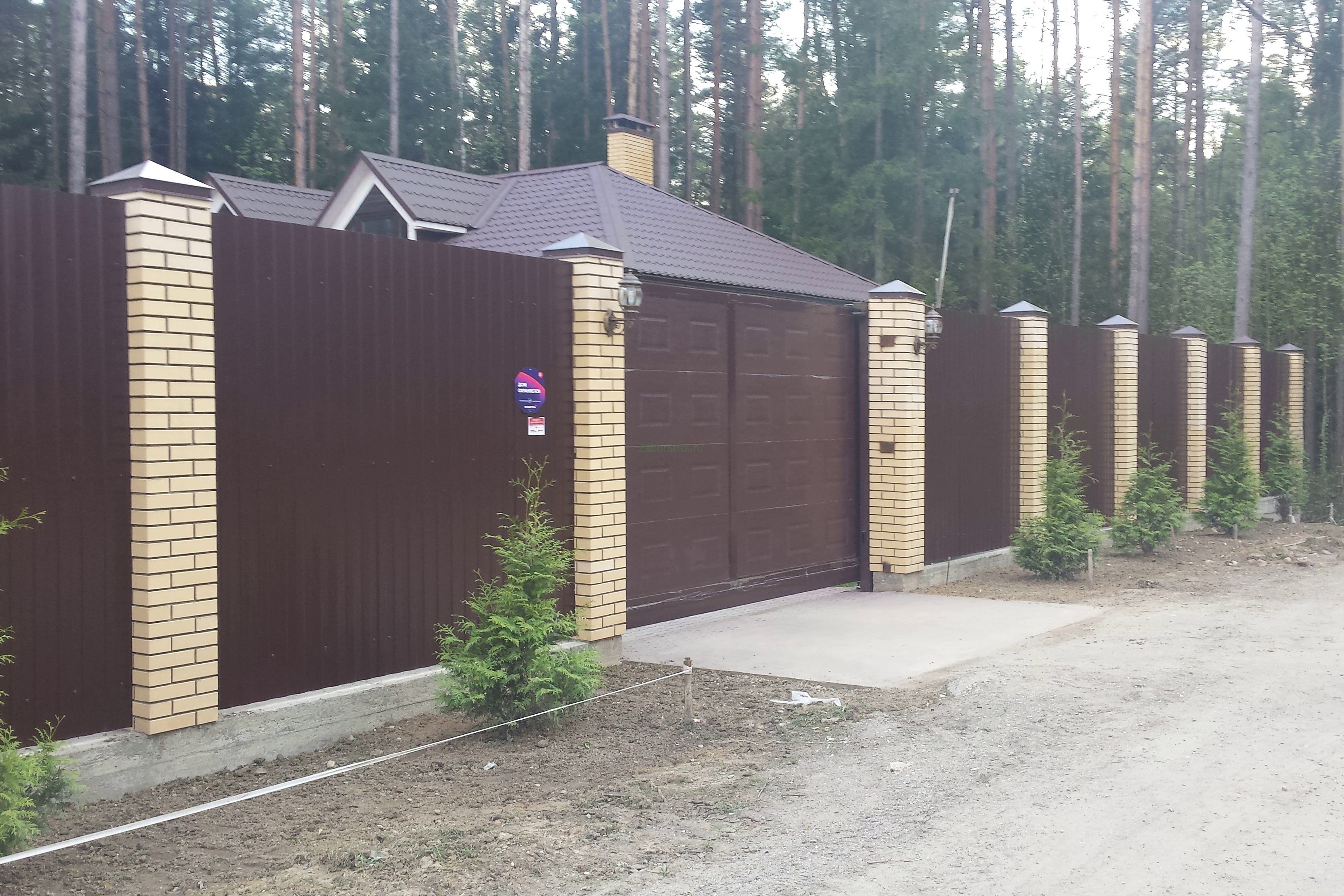 Откатные ворота из профнастила на винтовых сваях (цена на бетонном основании +20000р)